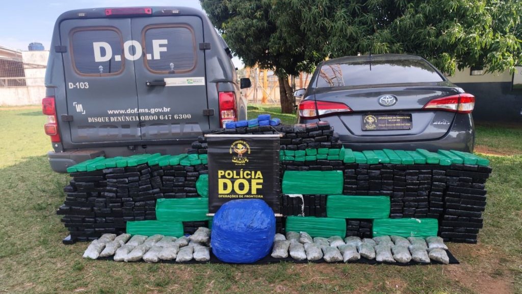 Policiais militares do DOF (Departamento de Operações de Fronteira) apreenderam, nesta tarde de quinta-feira (18), mais de 450 quilos de maconha e skunk, que eram transportados em um veículo Toyota Yaris. A ação foi registrada na cidade de Iguatemi. Um homem e uma mulher de 23 e 19 anos, respectivamente, foram presos em flagrante.
