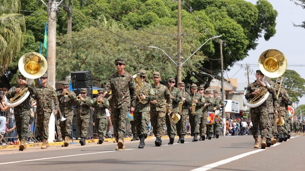 O Exército Brasileiro encantou o público que lotou as duas calçadas de 15 quadras da Avenida Marcelino Pires para acompanhar o desfile de 7 de Setembro na manhã deste domingo. Sob os olhares atentos do general de Brigada, Abelardo Prisco de Souza Neto, comandante da 4ª Brigada de Cavalaria Mecanizada, a Brigada Guaicurus, do prefeito Marçal Filho e demais autoridades militares e civis, a Força Verde Oliva passou diante do palanque oficial na Praça Antônio João homenageando os 80 anos das vitórias da Força Expedicionária Brasileira (FEB) na 2ª Guerra Mundial, quando o Brasil e aliados marcharam na Itália contra o nazifascismo. O evento cívico atraiu mais de 30 mil pessoas, entre público e participantes.