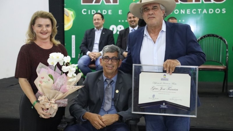 Um dos homenageados foi o ex-vereador e atual presidente do Sindicato Rural, Gino Ferreira. A indicação foi do vereador Alex Cadeirante (PSDB), justificada pelo compromisso e dedicação de Gino com o setor agropecuário e a realização da Expoagro, promovendo um diálogo essencial entre o campo e a cidade.