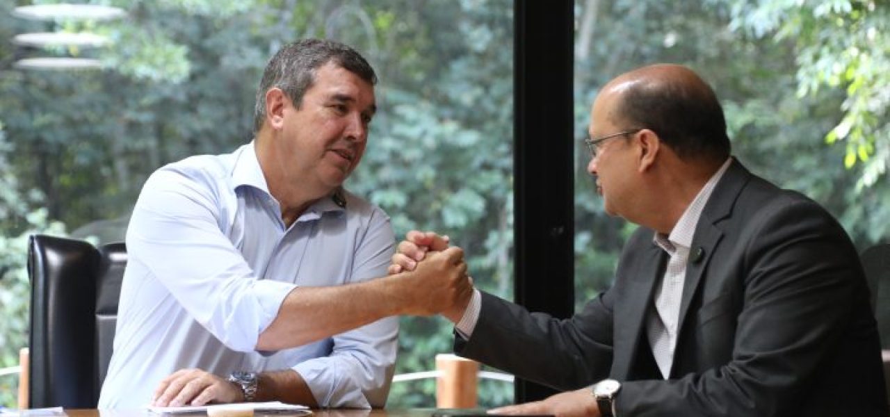 O governador Eduardo Riedel voltou de férias nesta segunda-feira (13) e recebeu o “bastão” do vice-governador José Carlos Barbosa (Barbosinha), que esteve à frente do governo de Mato Grosso do Sul nos últimos 10 dias. Eles destacaram a importância de manter a agenda municipalista, com foco nas entregas e investimentos em todas as 79 cidades do Estado, além de continuarem o trabalho pelo desenvolvimento e crescimento de MS.