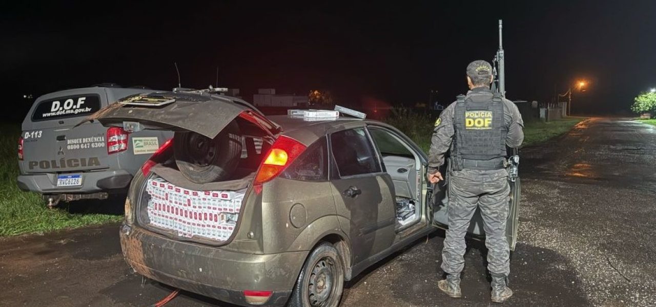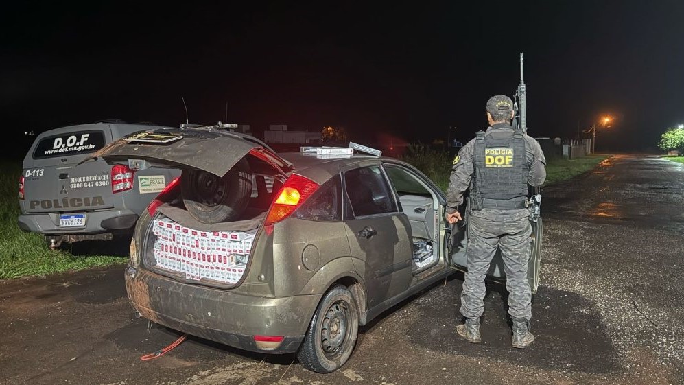 Policiais militares do DOF (Departamento de Operações de Fronteira) apreenderam, nesta quinta-feira (24), em Ponta Porã, um veículo Ford Focus carregado com cigarros contrabandeados e pneus. Na ação, um homem de 45 anos foi preso em flagrante.