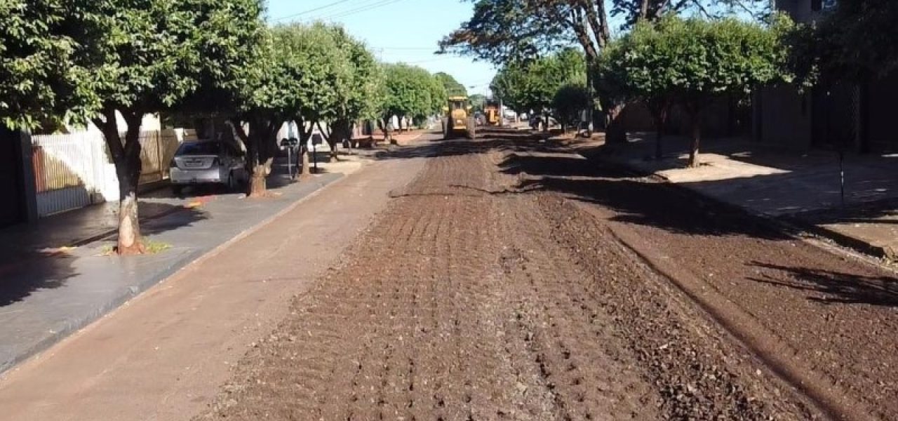 As máquinas também estavam em operação na rua Rio Brilhante, atuando nos cruzamentos com as ruas Araguaia e Itamarati, ampliando o alcance das melhorias viárias no bairro.