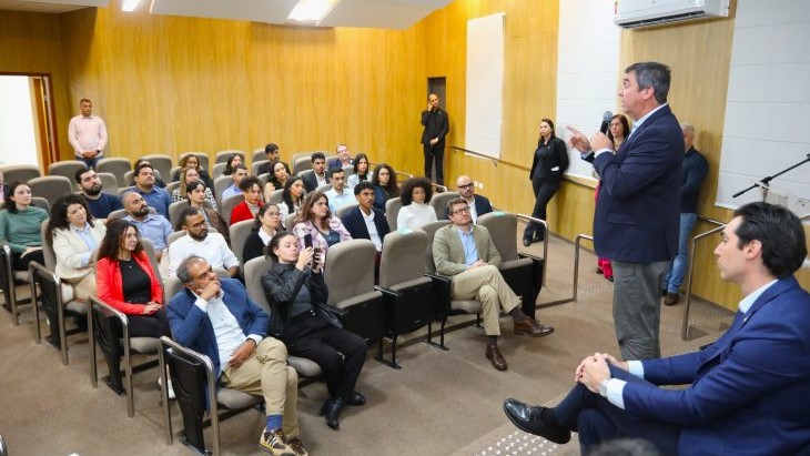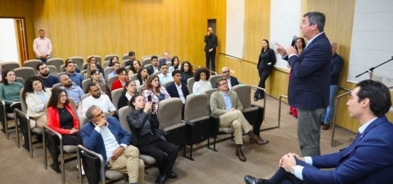 Jovens altamente capacitados de diversas regiões do País e participantes do Programa Trainee de Gestão Pública do Governo de Mato Grosso do Sul foram recepcionados nesta manhã por gestores, coordenadores, secretários estaduais e pelo governador Eduardo Riedel, responsável pela implantação desta iniciativa em 2015, quando ainda era secretário de Governo e Gestão Estratégica.
