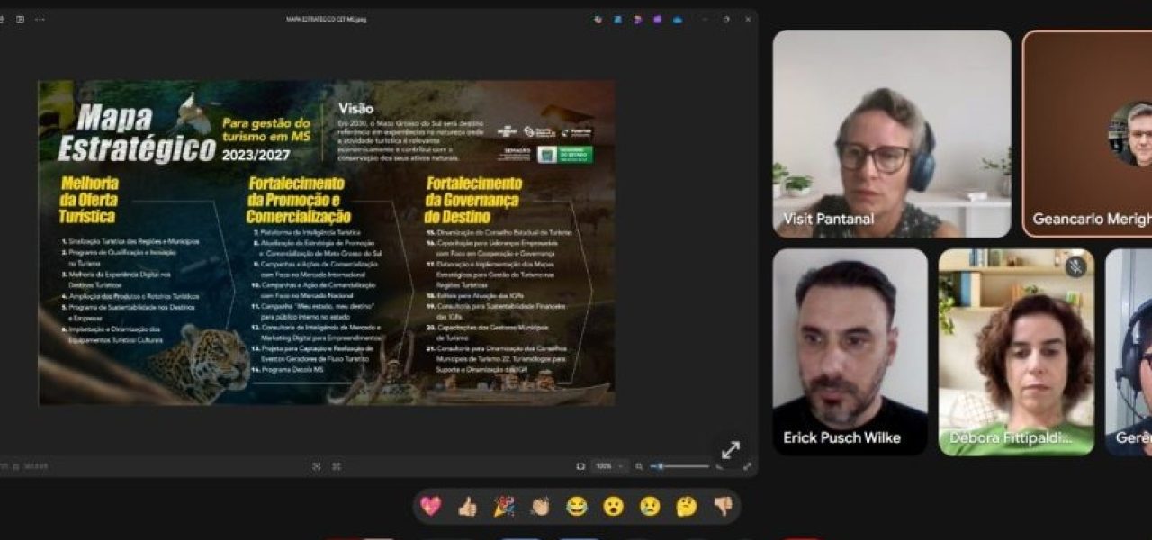 Erick reforçou a importância da participação ativa das regiões turísticas e das entidades que compõem o Conselho. “A comissão conta com o apoio das IGRs e demais membros do CET-MS, uma vez que as informações coletadas darão subsídio para a atualização do Mapa Estratégico do Turismo de MS em uma visão que abrange todo o estado até 2030”.