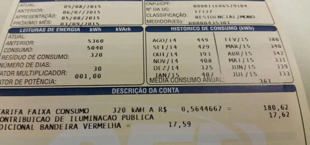Quando a conta de luz é calculada pela bandeira verde, não há nenhum acréscimo. Quando são aplicadas as bandeiras vermelha ou amarela, a conta sofre acréscimo a cada 100 quilowatts-hora (kWh) consumido.