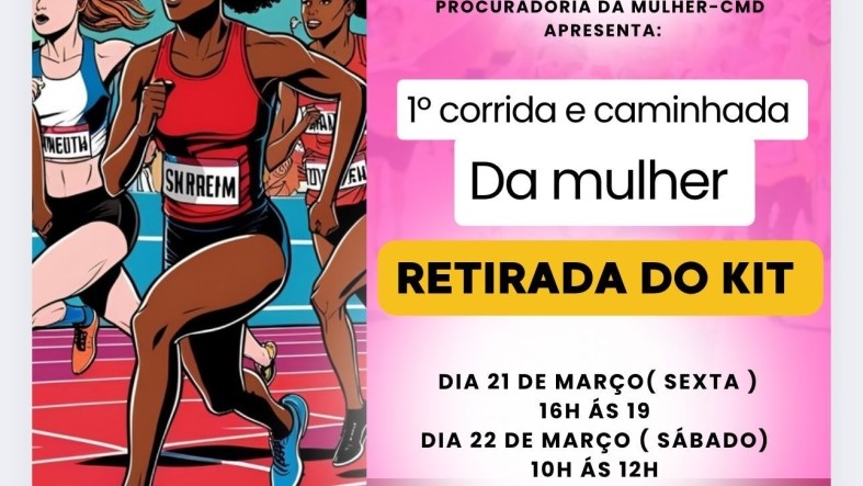 No mês das mulheres, a Procuradoria da Mulher da Câmara de Dourados, realizará no próximo domingo, 23, a 1ª Corrida e Caminhada da Mulher. O evento contará com 100 inscritas nas modalidades caminhada (3km) e corrida (5km). As participantes receberão uma camiseta exclusiva e medalha pela participação.