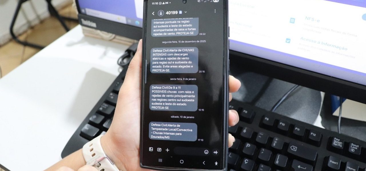 Os alertas podem ser emitidos tanto pela Defesa Civil estadual, com sede em Campo Grande, quanto pela Defesa Civil municipal de Dourados, conforme a situação registrada. O órgão destaca ainda que o serviço não substitui a previsão do tempo. As mensagens são enviadas apenas quando há identificação de cenários que exigem atenção especial ou a adoção de medidas preventivas, funcionando como um instrumento de proteção e segurança para a população.