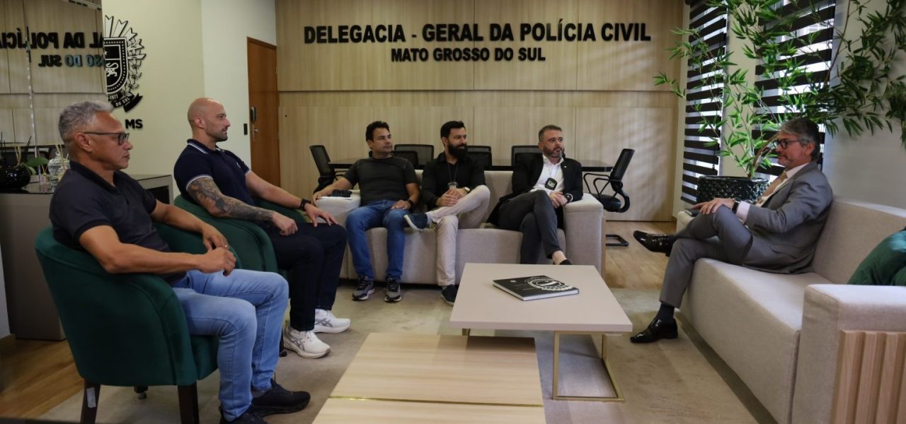 O Delegado-Geral da Polícia Civil do Mato Grosso do Sul, Lupérsio Degerone Lúcio, recebeu nesta terça-feira (7) representantes da Força Nacional de Segurança Pública para tratar do planejamento de ações integradas a serem desenvolvidas na região do Cone Sul do Estado, especialmente na Região da Grande Dourados.
