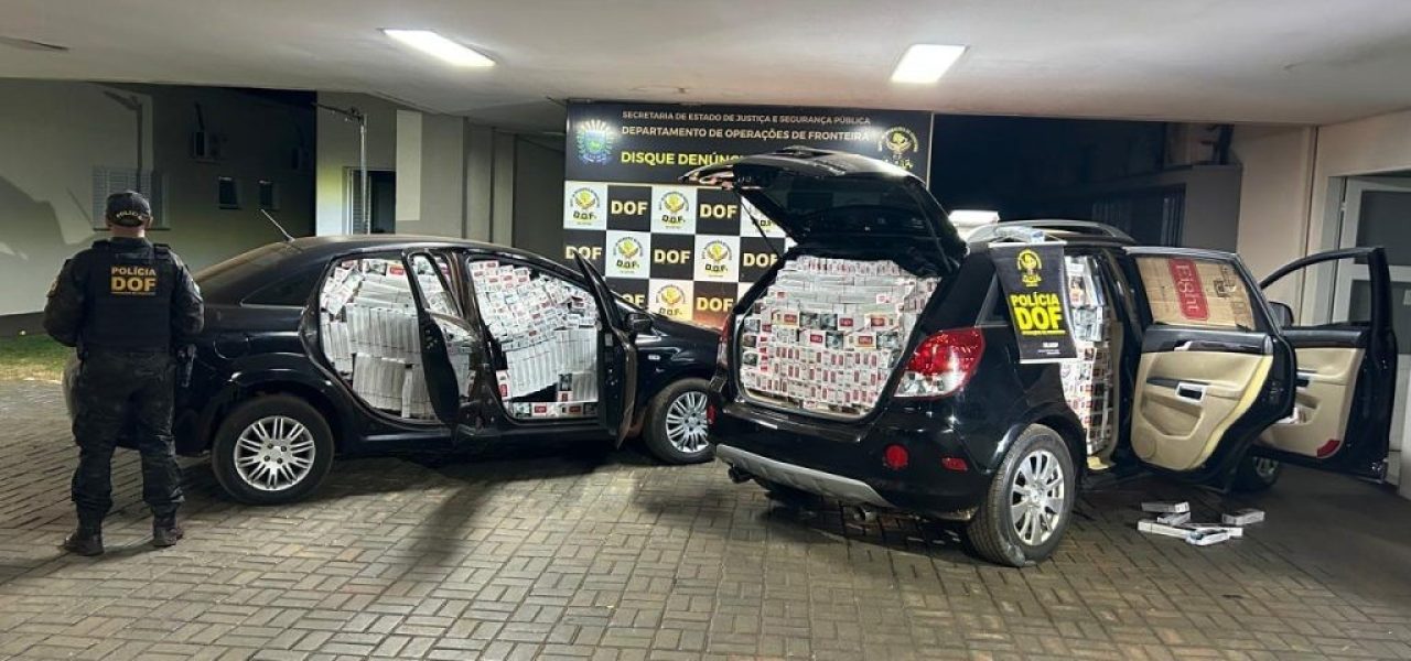 Policiais militares do DOF (Departamento de Operações de Fronteira) apreenderam nesta segunda-feira (21), em Rio Brilhante um GM Captiva e um Fiat Linea carregados de cigarros contrabandeados do Paraguai. Na ação, dois homens de 21 e 31 anos foram presos.