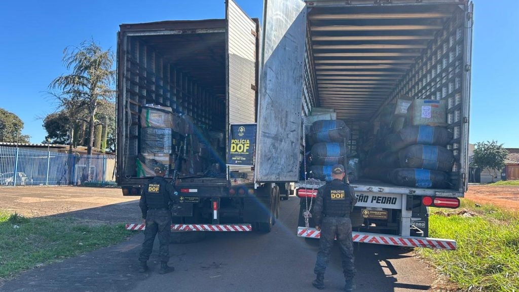 Os militares faziam bloqueio na MS-040, área rural do munícipio, quando abordaram os condutores. Em vistoria nos veículos, modelo baú, foram encontrados 94.122 unidades de óculos, 93.550 unidades de cigarros eletrônicos, 19.700 essências de narguilé, 8.000 cartuchos de agulha para tatuagem, 8.000 pen drives, 669 perfumes, 400 celulares e 95 volumes de roupas.