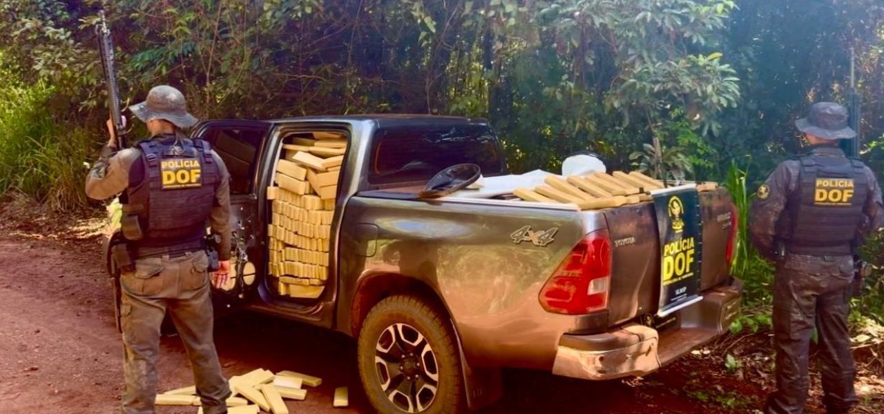 Policiais militares do DOF (Departamento de Operações de Fronteira) apreenderam, na tarde de segunda-feira (30), uma caminhonete Toyota Hilux carregada com 2.150 quilos de maconha. A ação ocorreu em uma estrada vicinal no distrito de Itahum, em Dourados.