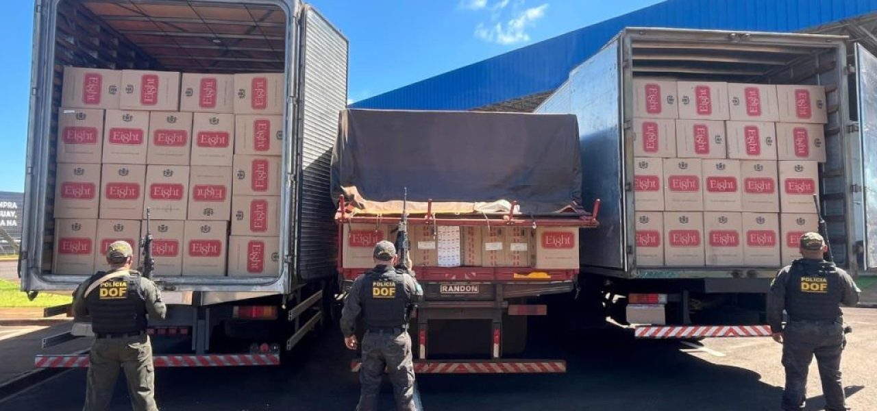 Durante vistoria nos veículos, os policiais encontraram diversas caixas de cigarros. Os materiais apreendidos, avaliados em aproximadamente R$ 2,8 milhões, foram encaminhados à Receita Federal de Mundo Novo.