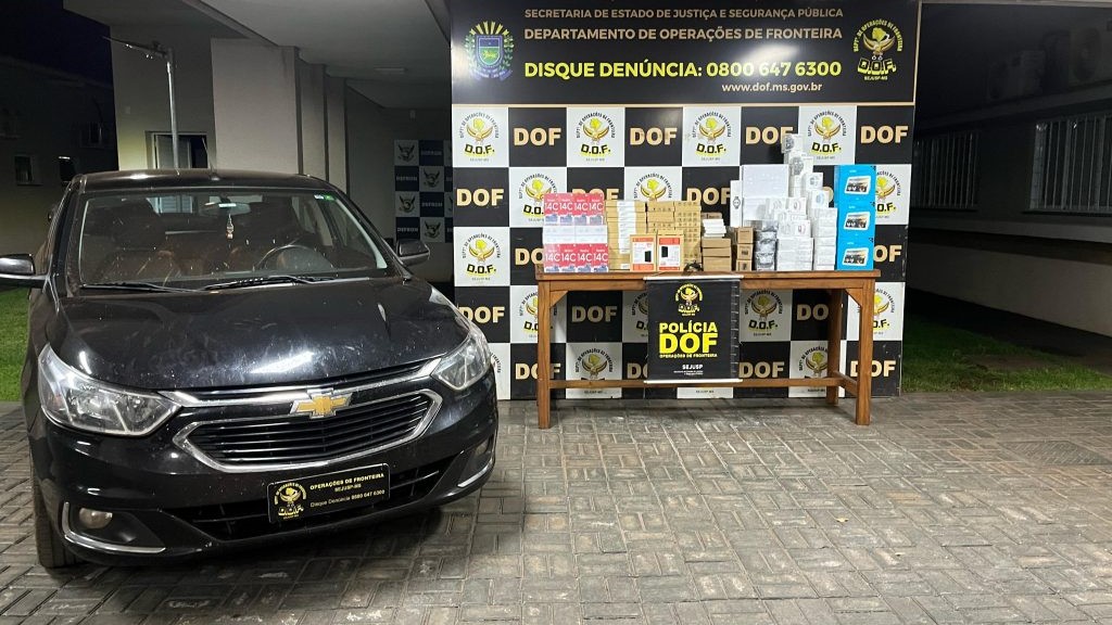Policiais militares do DOF (Departamento de Operações de Fronteira) apreenderam nesta quarta-feira (23), na MS-379, próximo em Laguna Carapã, um GM Cobalt carregado com materiais de descaminho. Na ação, um homem de 31 anos foi detido.