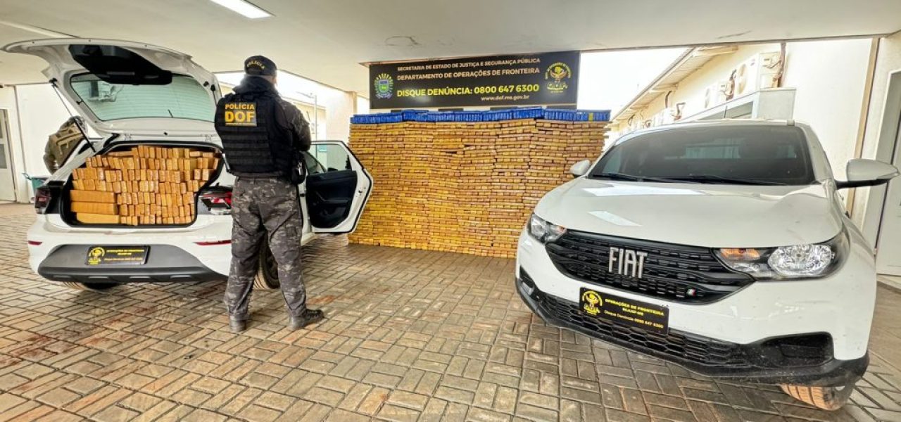 Policiais militares do DOF (Departamento de Operações de Fronteira) recuperaram, nesta quinta-feira (29), um veículo Fiat Strada e apreenderam um VW Polo Track, ambos de cor branca, carregados cada um com mais de mil quilos de maconha em Ponta Porã. Na ação, ninguém foi preso.