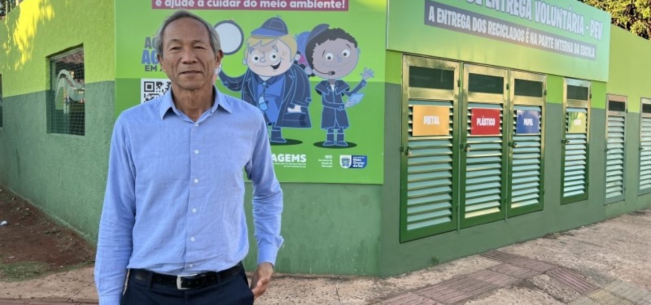 Durante visita à Escola Estadual Fausta Garcia Bueno, no bairro Coophasul, em Campo Grande, o vereador conheceu o modelo já em funcionamento. A estrutura do ponto de coleta é disponibilizada à comunidade escolar e também aos moradores, possibilitando o descarte correto de papel, plástico, metal e vidro.