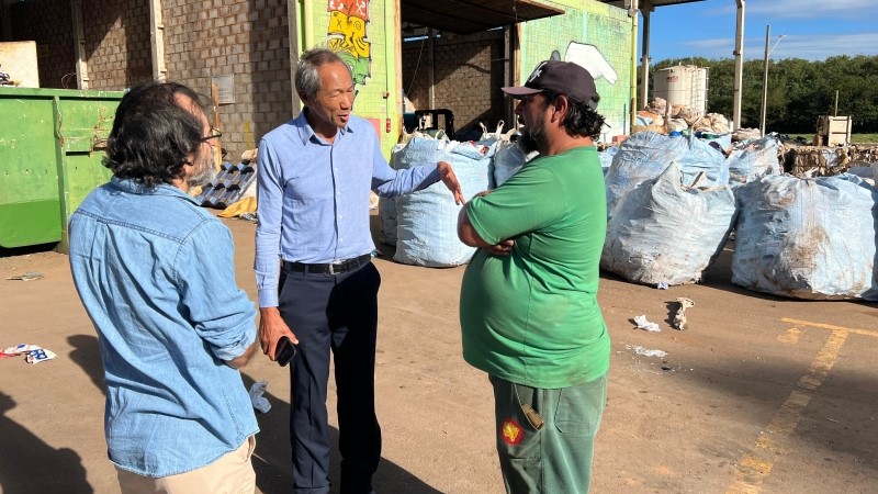Com o objetivo de buscar referências e alternativas para ampliar o sistema de coleta e reaproveitamento de resíduos sólidos em Dourados, o vereador Elias Ishy (PT) esteve em Campo Grande na última semana, onde visitou a Unidade de Triagem de Resíduos, localizada no Parque do Lageado.