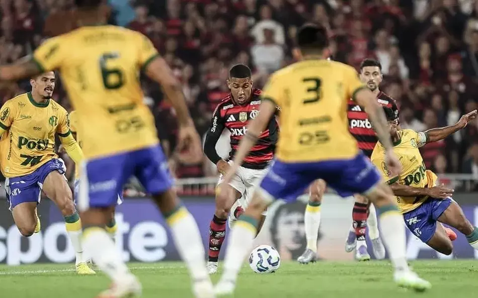Na sua estreia no Maracanã, o Mirassol sentiu logo a agressividade do Flamengo, marcando em cima, sob pressão e não permitindo a saída de bola do visitante.