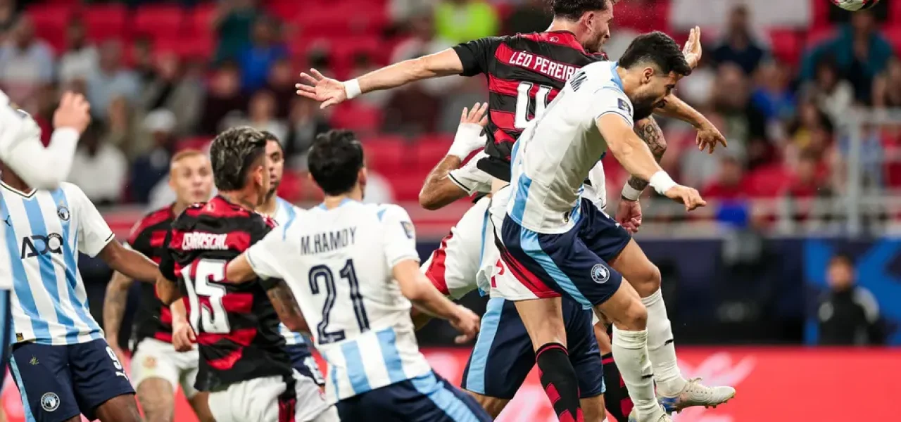 A combinação entre bola parada e jogo aéreo também fez diferença na volta do intervalo, justamente no momento que o Rubro-Negro estava pior em campo. Aos seis minutos, Arrascaeta bateu falta da intermediária pela esquerda e Danilo cabeceou no canto do goleiro Mohamed El-Shenawy.