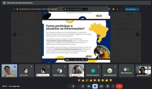 A Fundação de Turismo de Mato Grosso do Sul realizou na última sexta-feira (21/02) uma transmissão ao vivo destinada aos gestores municipais de turismo. O objetivo foi esclarecer dúvidas relacionadas à atualização do Mapa do Turismo Brasileiro, abordando temas como prazos, acesso ao sistema e os critérios necessários para que os municípios permaneçam integrados ao mapa.
