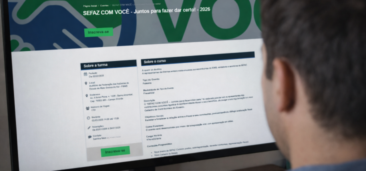 De cunho técnico e voltado à atualização, o evento girará em torno de sistemas e ferramentas que impactam diretamente a gestão fiscal das empresas, com foco em cadastro, conformidade e relacionamento entre o Fisco e os contribuintes. Com inscrições limitadas, o encontro será realizado a partir das 14h, no auditório da Fiems (Federação das Indústrias de Mato Grosso do Sul), localizado na avenida Afonso Pena, 1.206, bairro Amambaí, em Campo Grande.