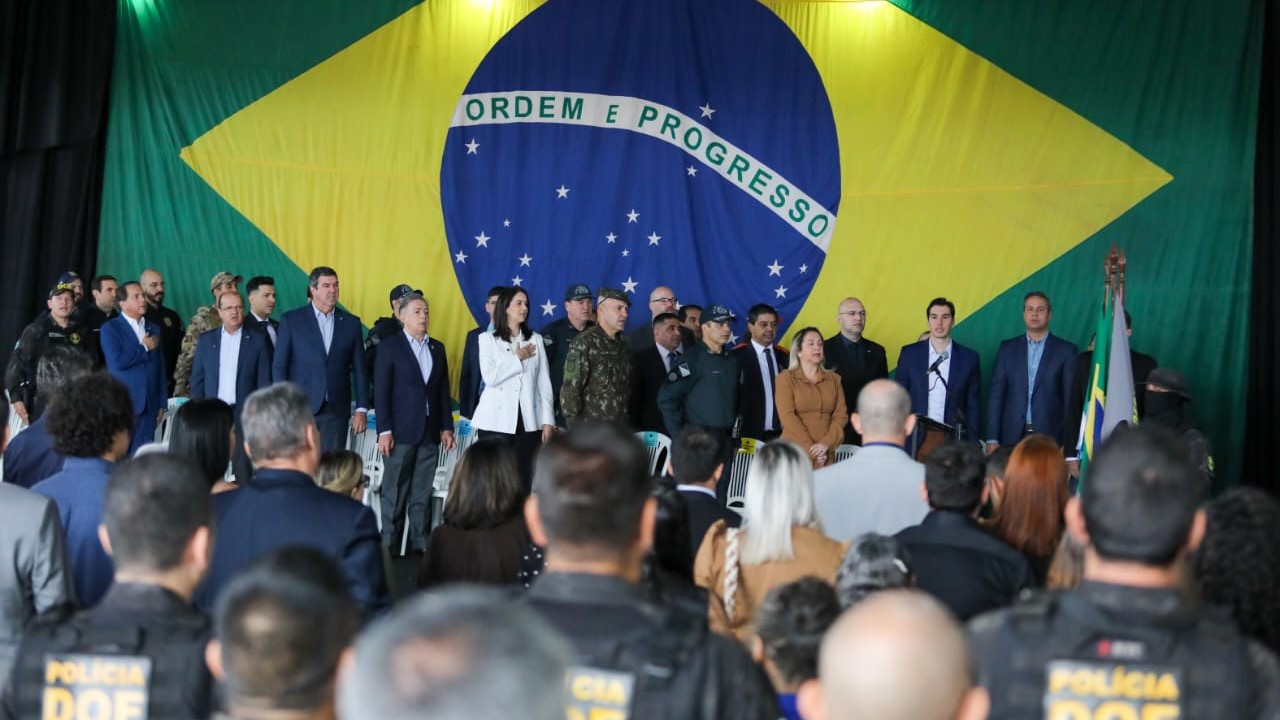 O secretário de Justiça e Segurança Pública, Carlos Videira, destacou o serviço de inteligência e o monitoramento de cargas – somente em 2025, o total de apreensões já ultrapassou 400 toneladas de drogas. “Quando a gente enfrenta o tráfico não está somente combatendo este crime, mas outros crimes acessórios, que vão desde furto e roubo até homicídio e latrocínio. Por isso, na nossa região, o trabalho do DOF é tão importante e valioso”, discursou, ao destacar que no Estado o investimento em segurança pública é expressivo e chega até a ponta.