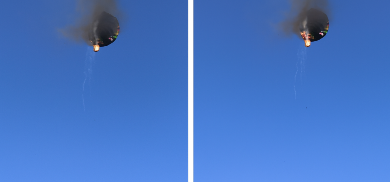 De acordo com a Polícia Civil, o piloto relatou que durante a emergência o balão em chamas conseguiu descer próximo ao chão. Neste momento houve orientação para que as pessoas pulassem. A maioria conseguiu desembarcar, porém o balão voltou a subir rapidamente. As chamas consumiram a estrutura, que despencou com as pessoas que não haviam descido.