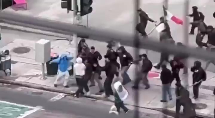 Em Los Angeles, um homem foi violentamente agredido por manifestantes contrários às políticas de deportação do então presidente Donald Trump. A vítima teria expressado seu apoio às novas diretrizes de deportação, o que provocou a reação agressiva dos manifestantes.
