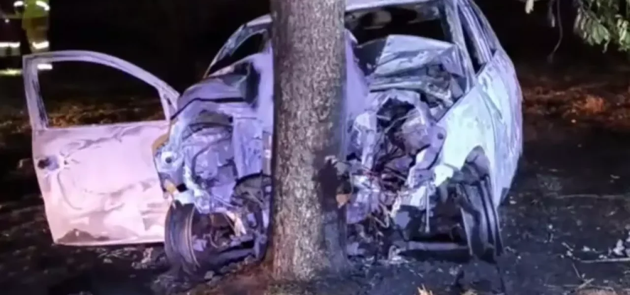 Motorista morre e filho fica ferido em Dourados após carro bater em árvore e pegar fogo