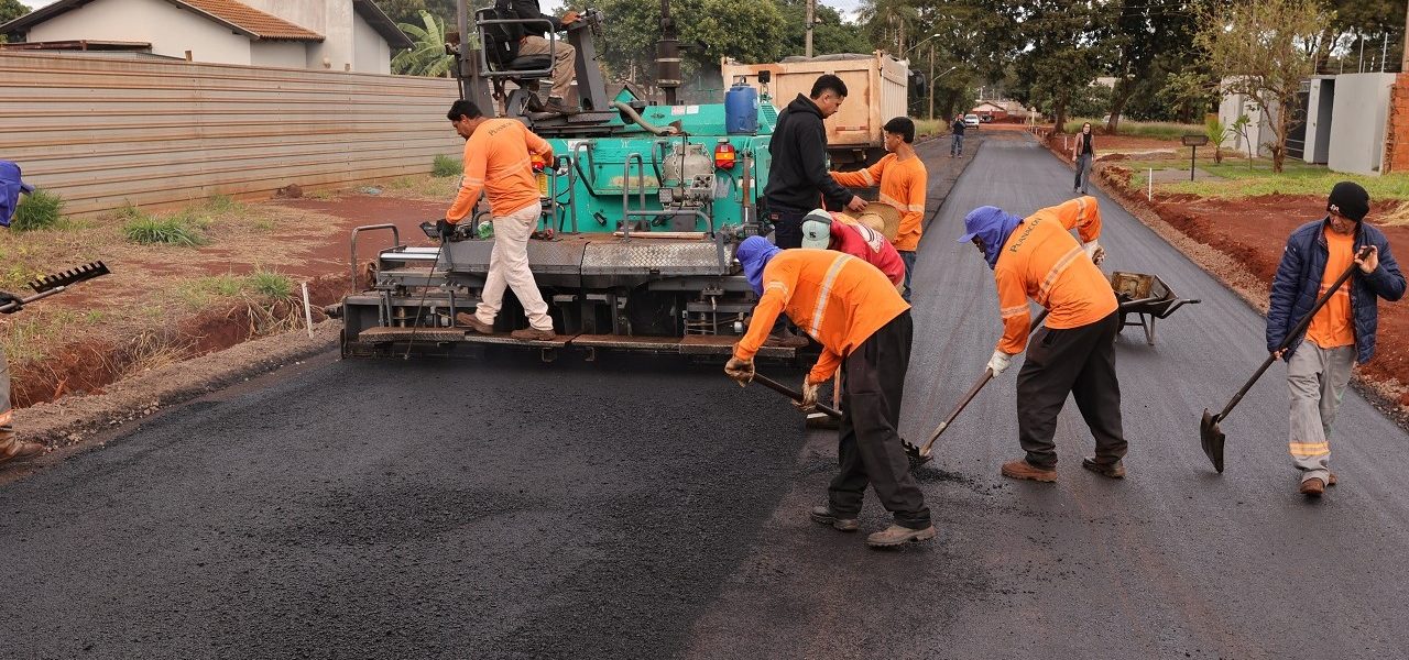 Avança a obra de pavimentação e drenagem no Jardim das Primaveras, em Dourados. Iniciado há 16 dias, o trabalho já está em fase de aplicação da massa asfáltica em um dos trechos e de construção de galeria pluvial em outro. O serviço contempla as ruas Alfio Senatore e Maria de Moraes Valente, nas proximidades do Hospital Universitário (HU).