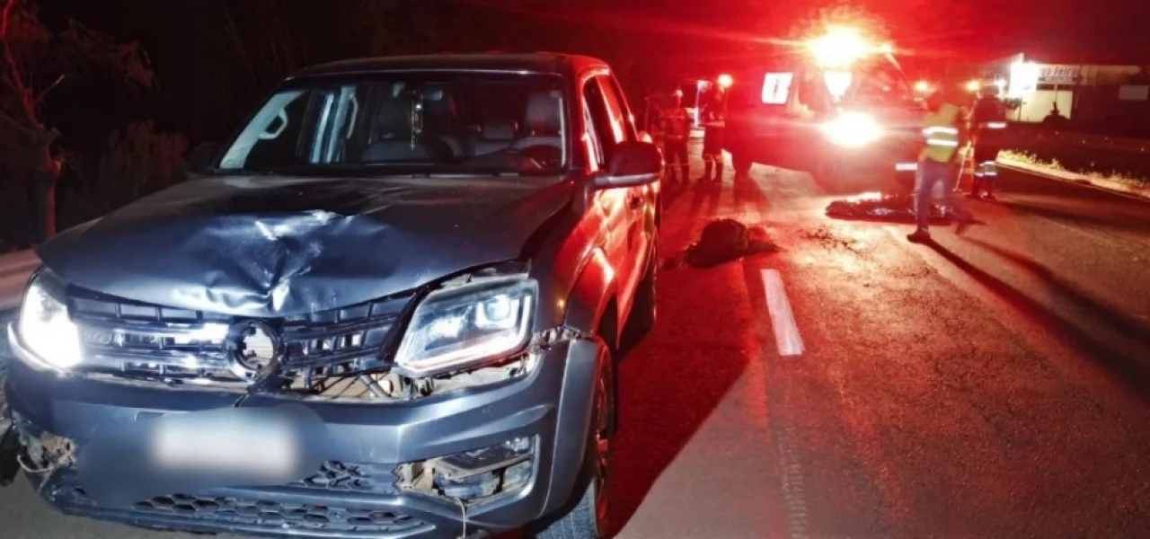 Um pedestre de 34 anos, identificado como Jean Pierre Ribeiro Queiroz, morreu após ser atropelado por uma caminhonete Volkswagen Amarok na noite desse sábado (24), na rodovia BR-163, na saída de Dourados para Caarapó.