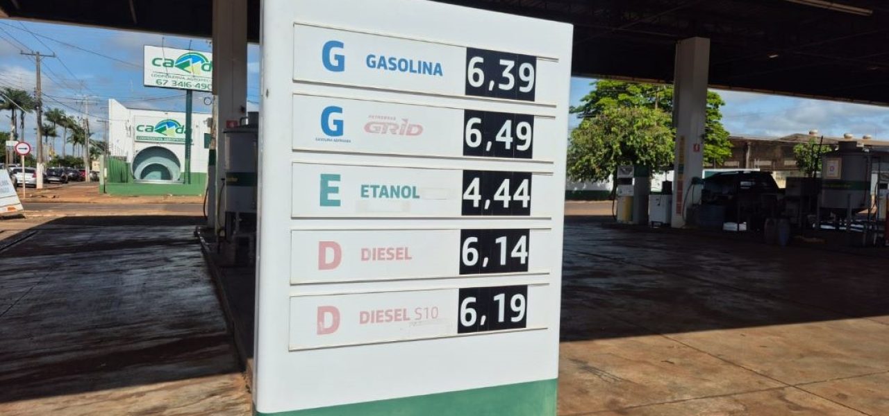 O preço médio da gasolina comum em Dourados, em janeiro de 2026, é de R$ 6,37, enquanto que em dezembro do ano passado, o preço médio praticado era de R$ 6,28, ou seja, aumento de 1,4%. Já o preço médio do etanol, em janeiro/2026, é de R$ 4,44, sendo que em dezembro/2025 era de R$ 4,26, registrando aumento de 4,22% no preço médio.
