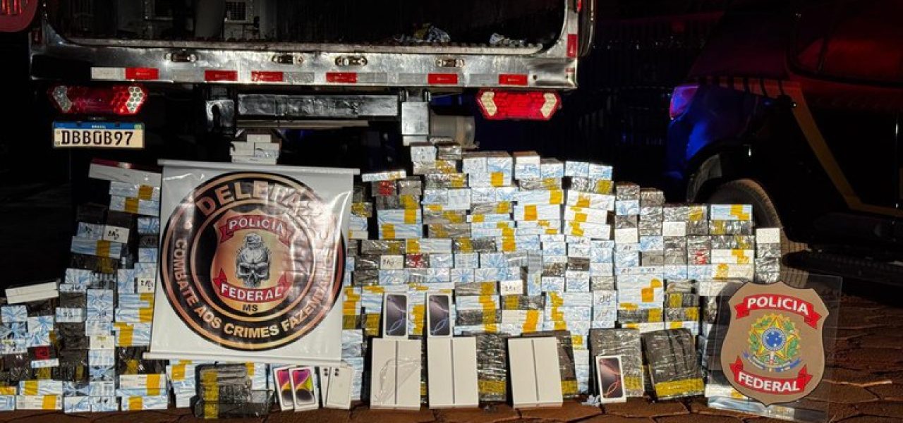 A abordagem ocorreu na rodovia BR-163, no município de Campo Grande, quando os policiais interceptaram um caminhão frigorífico que transportava uma carga lícita de carnes. Durante a fiscalização, os policiais federais localizaram, ocultos em compartimento dissimulado (fundo falso) no interior do baú refrigerado, cerca de mil aparelhos celulares de origem estrangeira, sem documentação fiscal e sem comprovação de regularidade alfandegária.