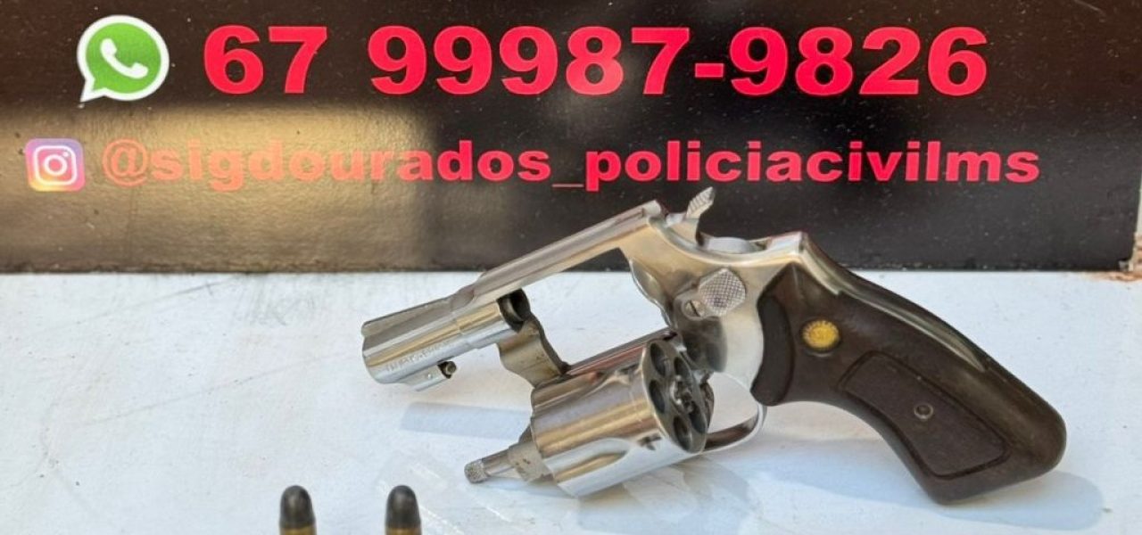 Nesta última quinta-feira (26), policiais civis do SIG/NRI de Dourados realizaram a prisão de P.E.B.T., 29 anos, após este ter sido flagrado em posse de uma arma de fogo do tipo revólver, calibre 38, municiado, em sua residência.