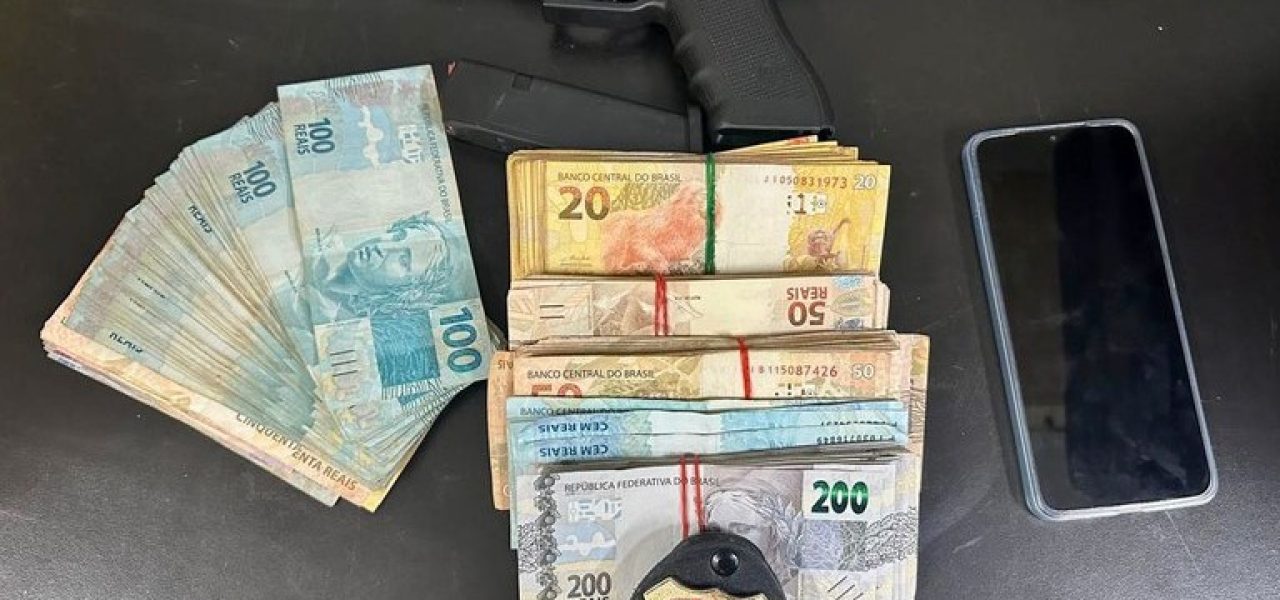 Além da arma, foram apreendidos dois aparelhos celulares e a quantia de aproximadamente R$ 7,5 mil em dinheiro.