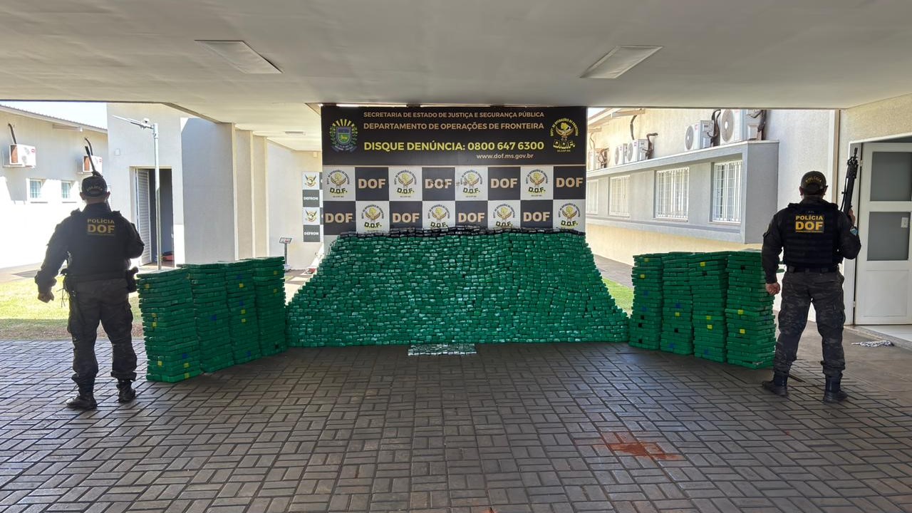 Policiais militares do DOF (Departamento de Operações de Fronteira) apreenderam, neste sábado (27), em Naviraí, mais de 1.600 quilos de maconha, além de skunk e haxixe, em uma caminhonete Toyota Hilux roubada no Estado do Paraná. Na ação, ninguém foi preso.