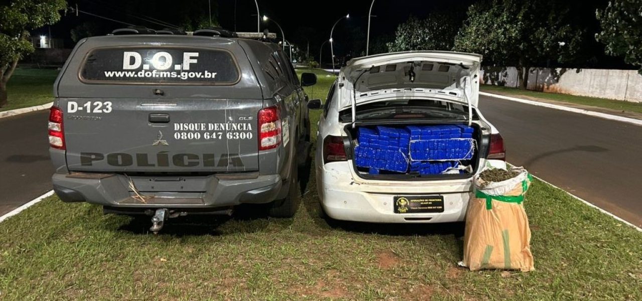 Policiais militares do DOF (Departamento de Operações de Fronteira) apreenderam nesta terça-feira (3), em Iguatemi, mais de 160 quilos de maconha e skunk que eram transportados em um GM Cobalt. Na ação, um homem de 30 anos e uma mulher de 27 foram presos.