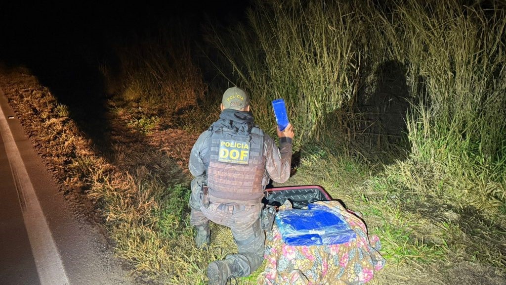 Policiais militares do DOF (Departamento de Operações de Fronteira) apreenderam nesta sexta-feira (04), em Tacuru, uma mala com maconha. Na ação, ninguém foi preso.