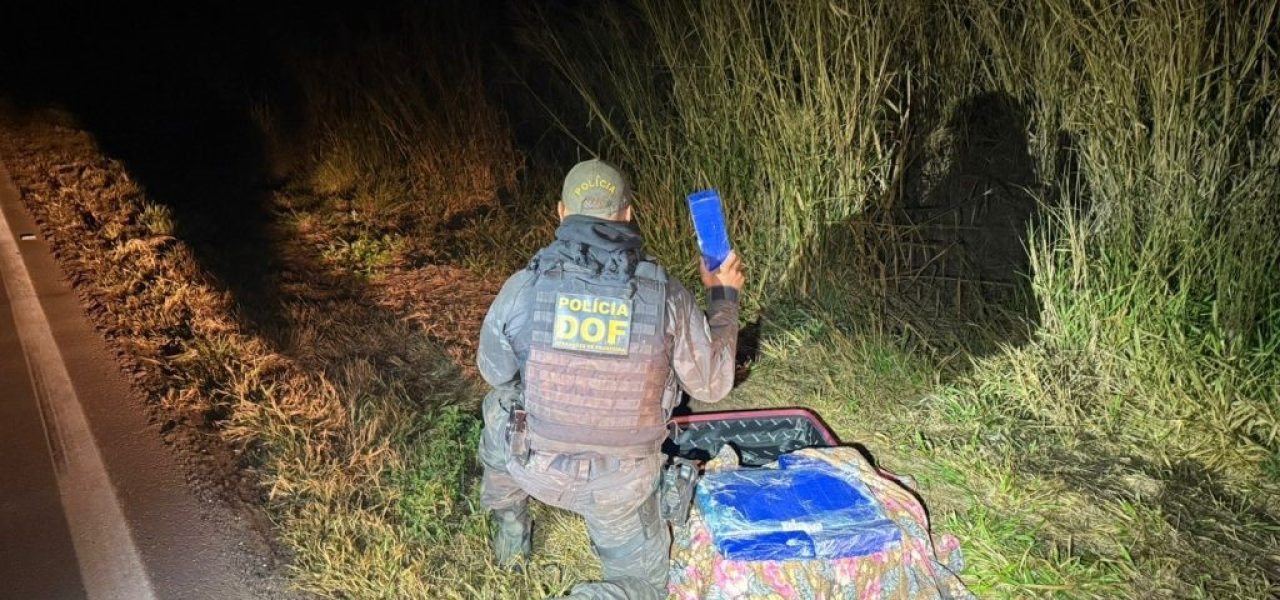 Policiais militares do DOF (Departamento de Operações de Fronteira) apreenderam nesta sexta-feira (04), em Tacuru, uma mala com maconha. Na ação, ninguém foi preso.