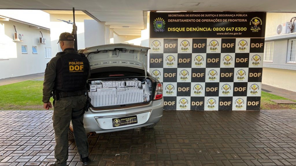 Policiais militares do DOF (Departamento de Operações de Fronteira) apreenderam nesta sexta-feira (27), em Dourados, um veículo GM Cobalt carregado de cigarros contrabandeados do Paraguai. Na ação, um homem de 66 anos foi preso.
