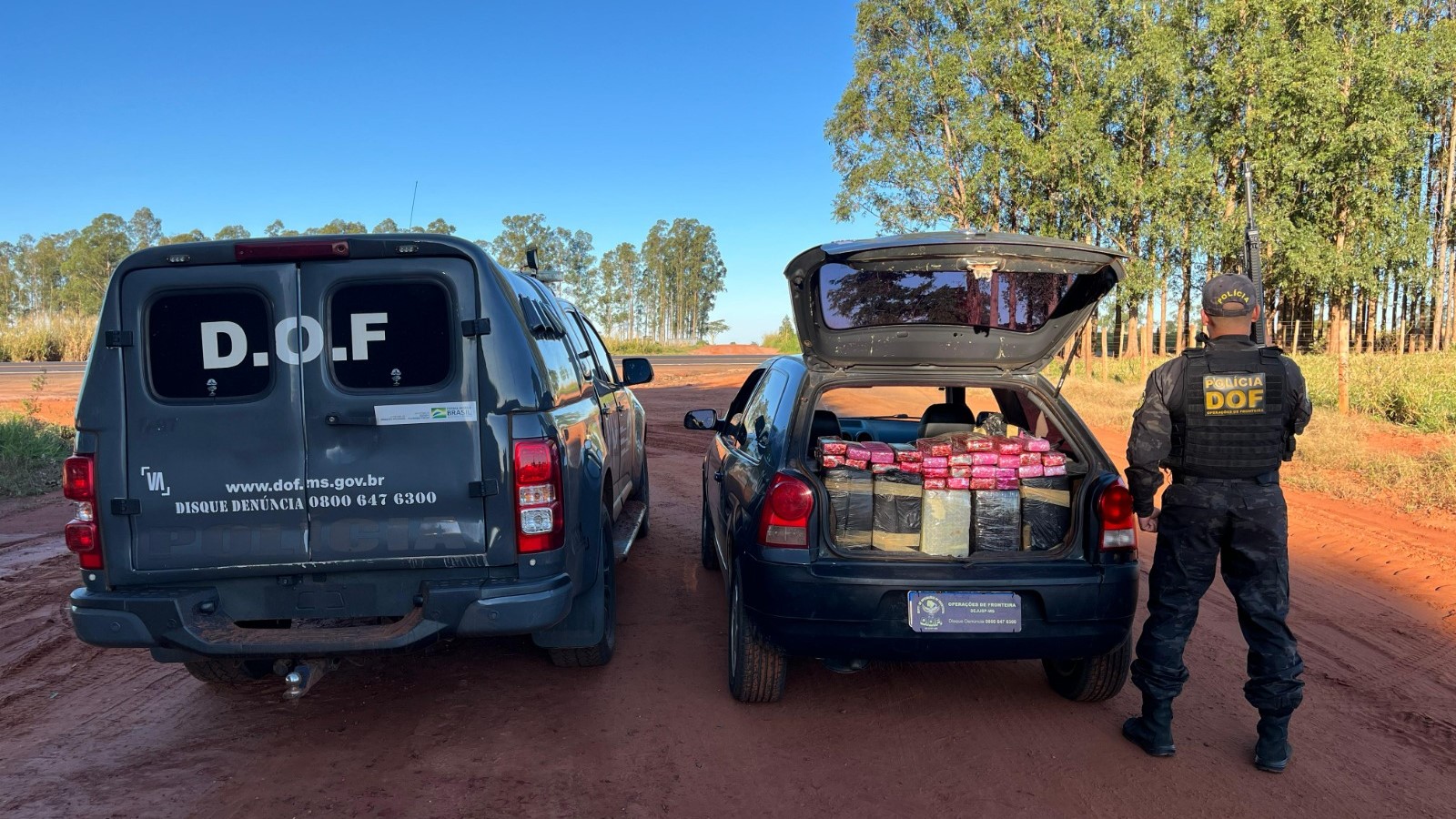 O material apreendido e o veículo, avaliados em aproximadamente R$ 680 mil foram encaminhados, juntamente com o autor, à Delegacia da Polícia Civil de Eldorado.