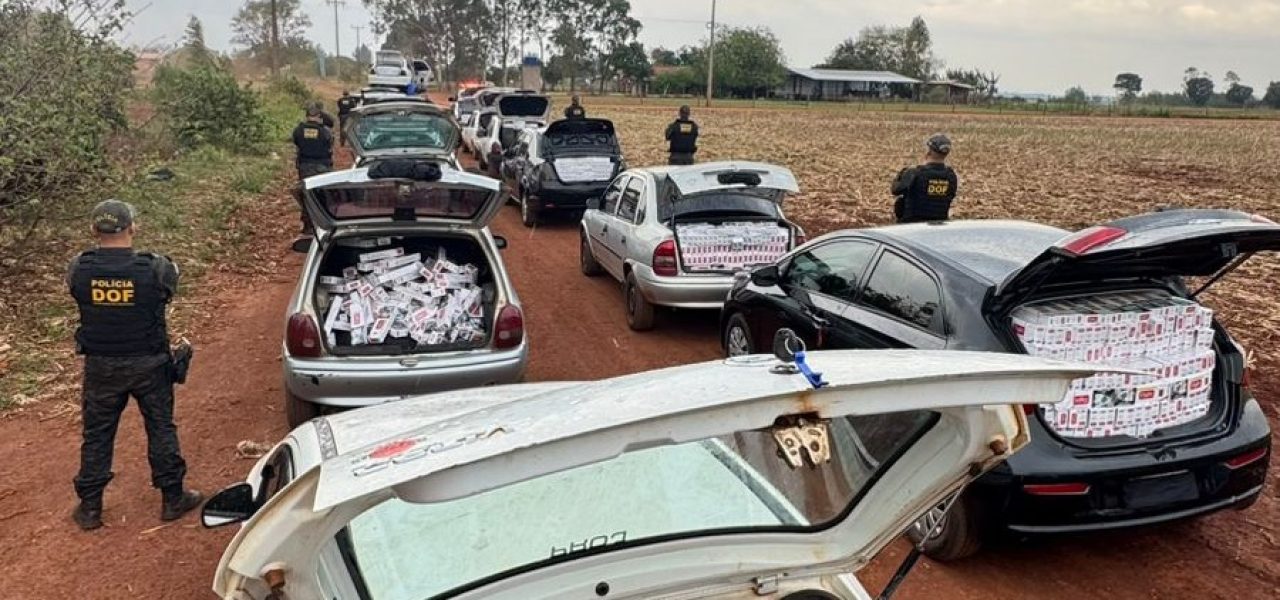 Policiais militares do DOF (Departamento de Operações de Fronteira) apreenderam, nesta segunda-feira (6), no Assentamento Itamarati, em Ponta Porã, 17 veículos carregados com materiais de contrabando e descaminho. Na ação, 14 pessoas — sendo 12 homens e duas mulheres — foram presas em flagrante.