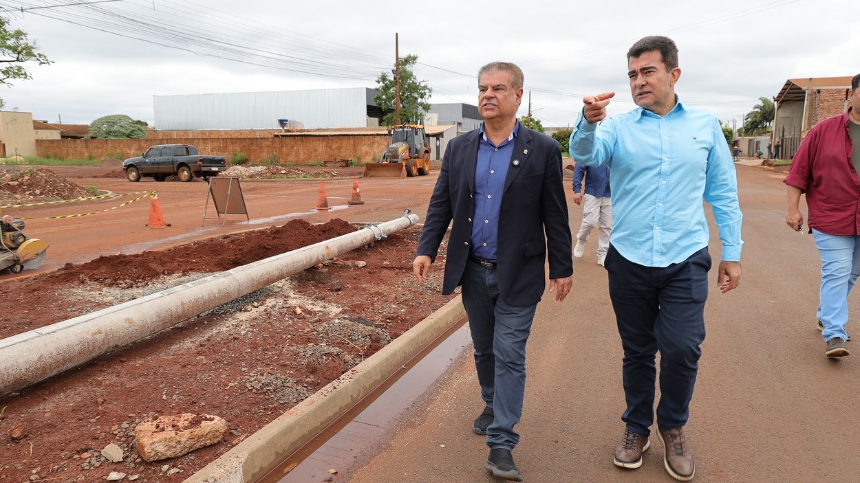 Depois da reunião, o prefeito Marçal Filho e o senador Nelsinho Trad realizaram, uma vistoria técnica no canteiro de obras de pavimentação asfáltica do Parque dos Jequitibás, em Dourados. A inspeção contou com a presença do secretário municipal de Obras Públicas, Jorge de Lúcia, responsável pelo acompanhamento da execução dos serviços.
