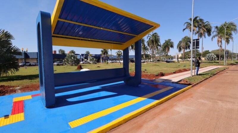 O prefeito destacou a qualidade do serviço, “desde a base até o acabamento”. Pintada nas cores predominantes do município (azul e amarelo), a nova estrutura, moderna e confortável, vai abrigar os passageiros das intempéries durante a espera. De concreto, com cobertura metálica, o ponto receberá ainda a instalação de vidros nas laterais e atrás. No local também foi construída calçada, com piso tátil. Lixeira também deverá ser instalada.