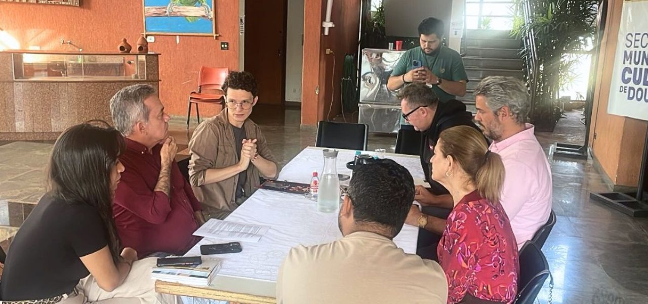O superintendente do Patrimônio da União em Mato Grosso do Sul, Thiago Botelho, a presidente do Diretório Municipal do PT, Rosa Dantas, e Ido Michels, chefe de Gabinete do deputado Vander Loubet, também participaram da reunião na Secretaria Municipal de Cultura.