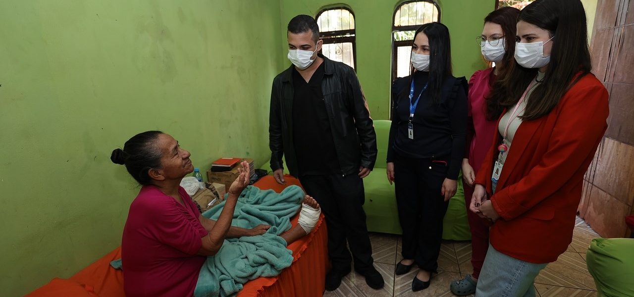 A equipe realiza visitas frequentes à residência da paciente, fazendo os curativos e oferecendo orientações sobre o tratamento. Francisca relatou melhora significativa e agradeceu a assistência recebida. “Estou muito contente”, enfatizou. “Eu estava sem rumo quando cheguei do hospital e graças a essa equipe que me acolheu, já estou muito bem”, continuou. “Eles são uma família para mim”, afirmou, emocionada, durante a visita do prefeito.