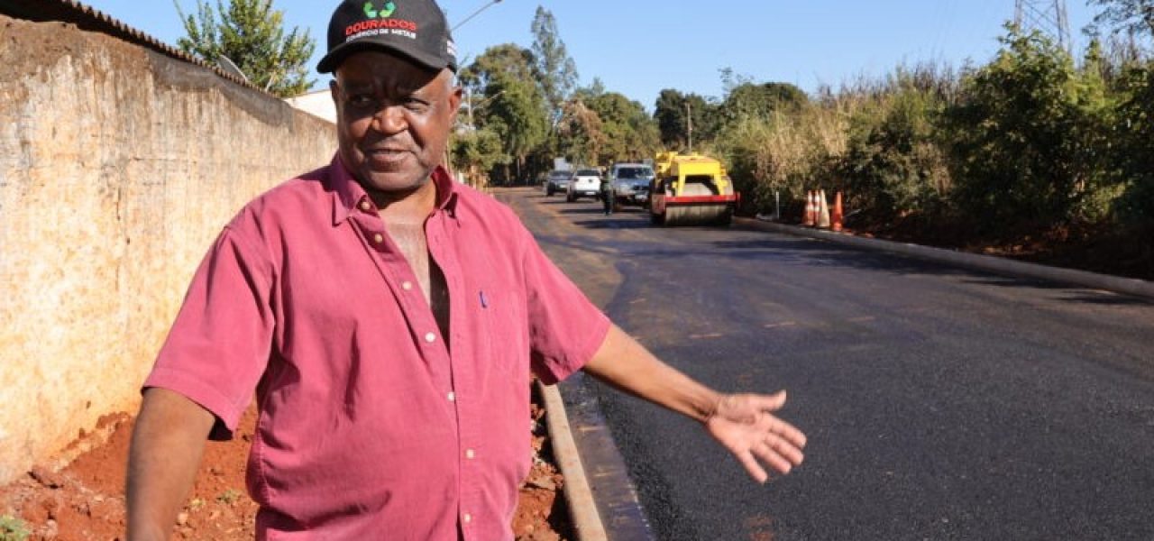 A Prefeitura de Dourados está avançando com obras de pavimentação e drenagem em bairros de Dourados. Na manhã desta quarta-feira, o prefeito Marçal Filho vistoriou a obra de asfalto na Rua Bento Pereira de Matos, na Vila Esperança e destacou como a ação vai transformar a realidade dos moradores da região. “Olha como está ficando bom o asfalto, isso é segurança, asfalto é conforto, é saúde, é valorização das casas e de toda região”, apontou o prefeito.