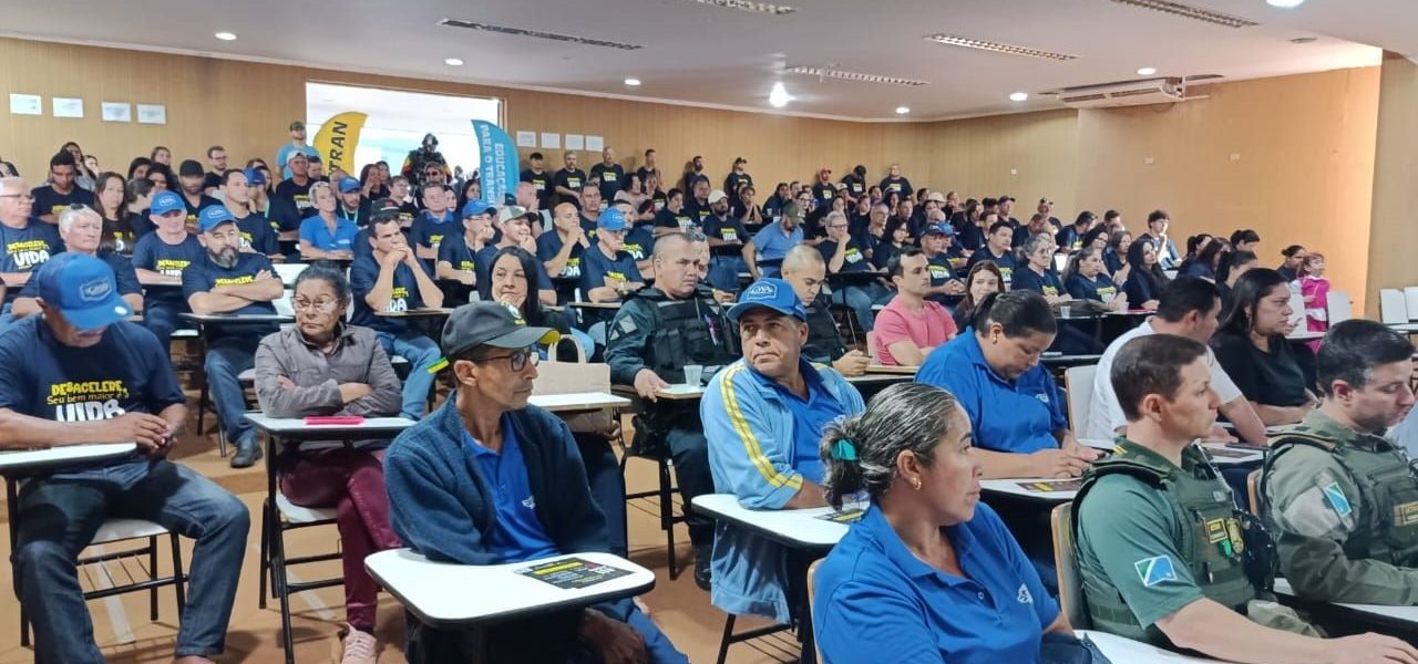 Com o tema ‘Desacelere, seu bem maior é a vida’, a Prefeitura de Dourados, por meio da Agência Municipal de Transporte e Trânsito (Agetran), com parcerias da Secretaria Municipal de Educação, do Conselho Estadual de Trânsito (Cetran-MS) e da empresa GWA Transportes Escolares, reuniu na manhã desta quarta-feira (07), motoristas de transporte escolar do município para assistirem palestra sobre segurança de trânsito. A ação aconteceu no auditório ‘Dr. José Cerveira’ do Centro Administrativo Municipal e faz parte da programação do Maio Amarelo, movimento internacional de conscientização para redução de sinistros de trânsito.