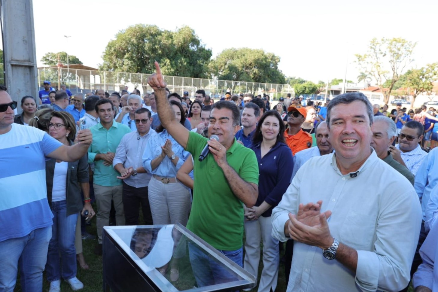 A solenidade aconteceu no Campo do Zé Tabela, no Jardim dos Estados e foi marcada, também, pela entrega oficial do complexo esportivo e de lazer à população. “Hoje é um dia muito especial para nós douradenses porque recebemos três ministros hoje em Dourados para entrega da pista do Aeroporto Regional de Dourados e pela assinatura da ordem de licitação do Terminal de Passageiros”, comemorou Marçal. “Hoje estamos assinando a ordem de serviço para recapeamento asfáltico e agradeço ao governador Eduardo Riedel pela parceria com Dourados que está contribuindo para a virada de chave na nossa cidade, assim como aconteceu no Estado com a eleição de Reinaldo Azambuja e a sucessão de Eduardo Riedel”, completou.