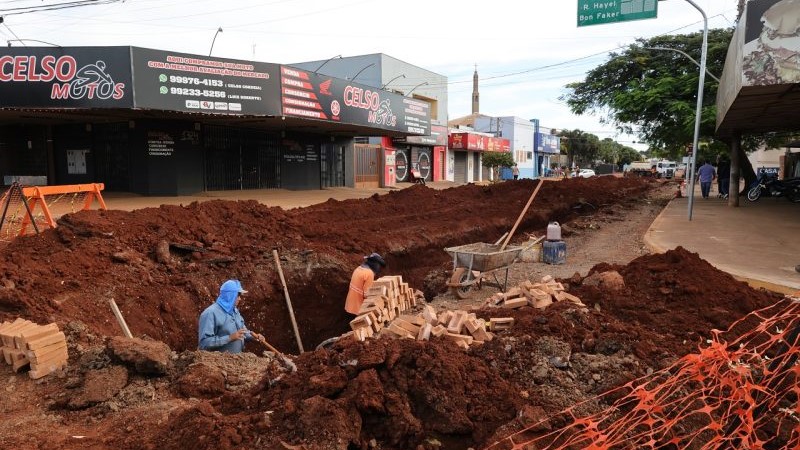 A Prefeitura de Dourados em parceria com o Governo do Estado iniciou a construção de galerias pluviais na Rua Bela Vista, entre as ruas Pureza Alves Carneiro (W7) e Silvia de Araújo Moraes (W8), no Jardim Água Boa. A intervenção busca solucionar um antigo problema de alagamento que afeta moradores e comerciantes da região. O prefeito Marçal Filho e o secretário municipal de Serviços Urbanos, Luis Roberto Martins, o Beto, estiveram no local para acompanhar os trabalhos.