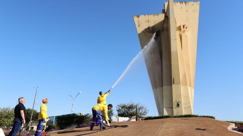 Enquanto a equipe da Secretaria Municipal Municipal de Serviços Urbanos (Semsur) iniciava os trabalhos, o prefeito fazia uma live mostrando a situação em que se encontra o Monumento ao Colono, popularmente conhecido como Mão do Braz. “Esse aqui é o monumento que as pessoas mais identificam com Dourados e está todo sujo, pichado, está muito feio”, comentou o prefeito. “Faz 33 anos que foi construído e não me lembro de ter passado pela manutenção e revitalização que iremos realizar”, completou Marçal Filho.